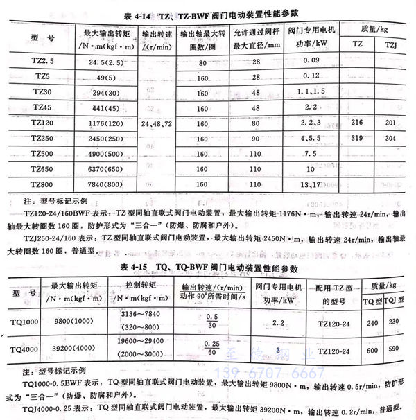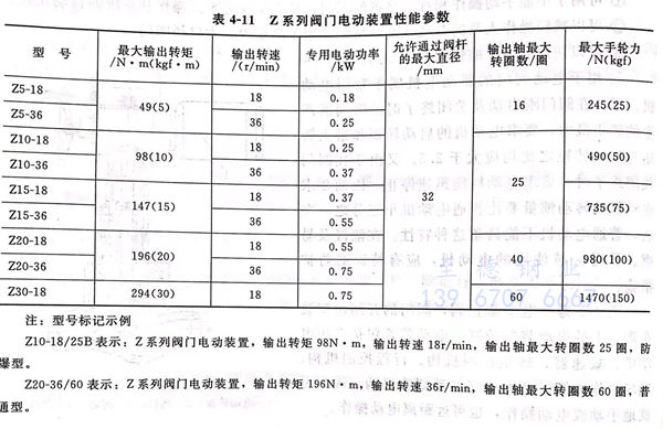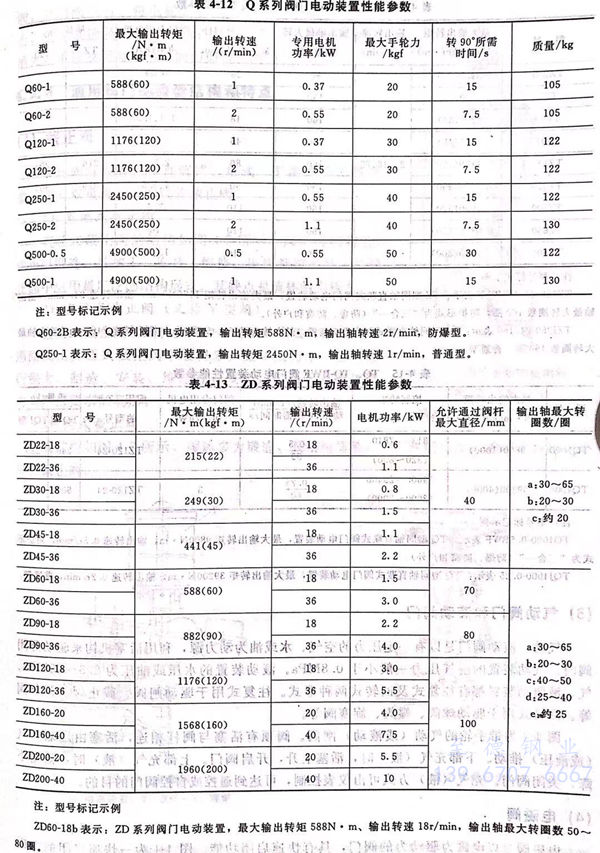 閥門電(dian)動裝置型(xing)號與性能參數(shu),見表 4-11~表4-15。