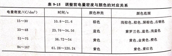 不(bu)銹鋼電化學著彩色酸性溶(rong)液成分和工藝(yi)條件見(jian)表(biao)9-9。配(pei)方(fang)3(見(jian)表(biao)9-9)的說明 。本配(pei)方(fang)由焦作工學院機械系 南紅(hong)艷(yan)、張躍(yue)敏、尹新斌、徐可提出。