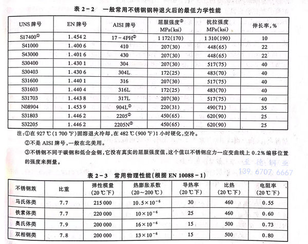 不銹鋼退火后的最低(di)力(li)學性能(neng)及常(chang)用物(wu)理性能(neng)如(ru)下(xia):