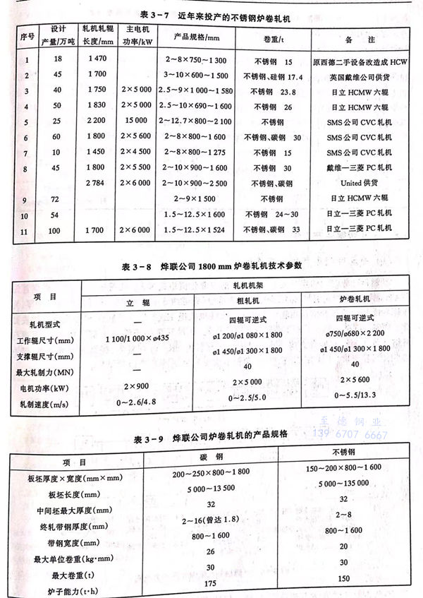 爐(lu)卷(juan)軋(ya)(ya)(ya)(ya)(ya)(ya)機(ji)(ji)(ji)(ji)是(shi)一(yi)(yi)種帶有(you)爐(lu)內卷(juan)取(qu)機(ji)(ji)(ji)(ji)的(de)可逆(ni)式熱(re)軋(ya)(ya)(ya)(ya)(ya)(ya)帶鋼軋(ya)(ya)(ya)(ya)(ya)(ya)機(ji)(ji)(ji)(ji)。這種軋(ya)(ya)(ya)(ya)(ya)(ya)機(ji)(ji)(ji)(ji)特(te)別適合于軋(ya)(ya)(ya)(ya)(ya)(ya)制(zhi)變形抗力大(da)、熱(re)塑(su)性低的(de)不銹鋼、高(gao)溫合金、硅鋼等鋼種,產(chan)量一(yi)(yi)般小于100萬噸。這種軋(ya)(ya)(ya)(ya)(ya)(ya)機(ji)(ji)(ji)(ji)在(zai)1987年以(yi)后(hou)采用(yong)了熱(re)連軋(ya)(ya)(ya)(ya)(ya)(ya)機(ji)(ji)(ji)(ji)的(de)一(yi)(yi)系(xi)列成熟有(you)效(xiao)的(de)新(xin)工藝(yi)、新(xin)設備,使傳統的(de)爐(lu)卷(juan)軋(ya)(ya)(ya)(ya)(ya)(ya)機(ji)(ji)(ji)(ji)在(zai)產(chan)品質(zhi)量、厚(hou)度規格和成材率等方(fang)面都有(you)了重大(da)突破。由于爐(lu)卷(juan)軋(ya)(ya)(ya)(ya)(ya)(ya)機(ji)(ji)(ji)(ji)投(tou)資(zi)約為連軋(ya)(ya)(ya)(ya)(ya)(ya)機(ji)(ji)(ji)(ji)的(de)1/3,因(yin)此在(zai)生產(chan)成本上也具有(you)很強(qiang)的(de)優勢,近(jin)10年來世界共有(you)十幾套爐(lu)卷(juan)軋(ya)(ya)(ya)(ya)(ya)(ya)機(ji)(ji)(ji)(ji)生產(chan)高(gao)質(zhi)量的(de)不銹鋼,見表(biao)(biao)3-7~表(biao)(biao)3-10.爐(lu)卷(juan)軋(ya)(ya)(ya)(ya)(ya)(ya)機(ji)(ji)(ji)(ji)的(de)精(jing)軋(ya)(ya)(ya)(ya)(ya)(ya)由于是(shi)在(zai)一(yi)(yi)個機(ji)(ji)(ji)(ji)架上經(jing)3~7道(dao)次完成的(de),所以(yi)帶鋼斷面尺(chi)寸精(jing)度和板形控(kong)制(zhi)較(jiao)難,一(yi)(yi)般應選用(yong)中(zhong)凸值控(kong)制(zhi)能力較(jiao)高(gao)的(de)軋(ya)(ya)(ya)(ya)(ya)(ya)機(ji)(ji)(ji)(ji),如CVC和PC軋(ya)(ya)(ya)(ya)(ya)(ya)機(ji)(ji)(ji)(ji),其使用(yong)效(xiao)果較(jiao)好。