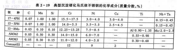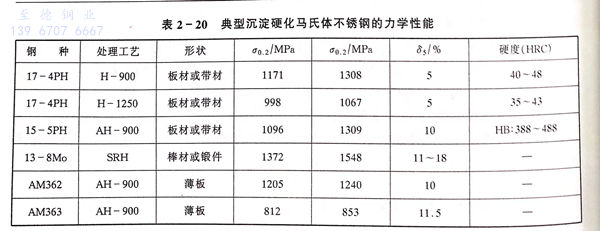 沉淀硬化馬氏(shi)體不(bu)銹鋼(gang)的化學成分如表2-19所示。這類鋼在高溫下是奧氏體組織,因其Ms點高,Mf點亦在室溫以上。以17-4PH鋼為例。經過1020~1060℃固溶處理后,形成馬氏體組織,再經時效處理(470~630℃),在馬氏體組織中固溶度小的Cu、Nb、Mo、Al、Ti等發生碳化物析出和強化作用,其屈服強度可達到1171MPa(見表2-20)。
