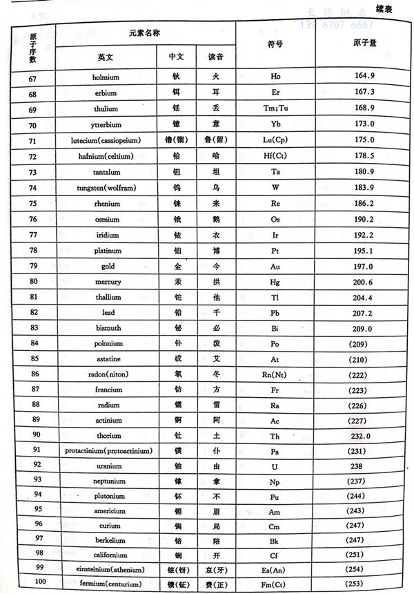 化(hua)學元(yuan)素名稱、英(ying)文、中文、符號、原子量和原子序列 對照(zhao)表