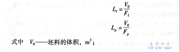 在預鉆孔坯料直接擴孔時,擴孔力可以按照實心坯料穿孔的公式計算,取低于其25%~30%的穿孔力。坯料在鐓粗和穿孔過程中,其長度發生兩次變化,鐓粗后坯料被壓縮變短,其期向減小的體積等于徑向增加的體積。穿孔之后,坯料長度變長,軸向增長的體積等于穿孔頭所穿出的整個內孔的體積。制定工藝制度時,可按下式確定鐓粗坯料的長度和穿孔后坯料的長度:Lp:
