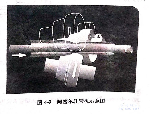 阿塞爾軋管機不適宜軋制薄壁(bi)不銹鋼管,經改進增加軋輥快開功能后,一般產品D/S<20。這種軋管機將三個帶輥肩的軋輥布置在以軋制線為中心的等邊三角形的頂點(三個軋輥互呈120°配置),軋輥軸線與軋制線成兩個傾斜角度。以上輥為例,軋輥軸線與軋制線在包含軋制線的水平面上的投影之間的夾角被稱為喂入角,它是用來實現螺旋軋制的;軋輥軸線與軋制線在垂直平面的投影之間的夾角被稱為輾軋角。在三個軋輥和一根芯棒所包圍的空間(即孔型,如圖4-9所示)內,由穿孔送來的毛管套在長芯棒上,用喂管器送人軋管機中軋制;毛管在變形區(圖4-10)中經咬入、減壁(同時減徑)、平整和歸圓而成為荒管。斜軋螺旋軋制時金屬在變形區內受到軋輥與芯棒的周期連續作用而產生形狀和尺寸的變化。