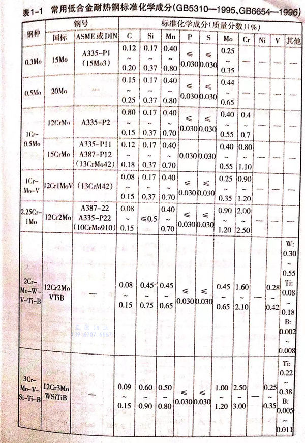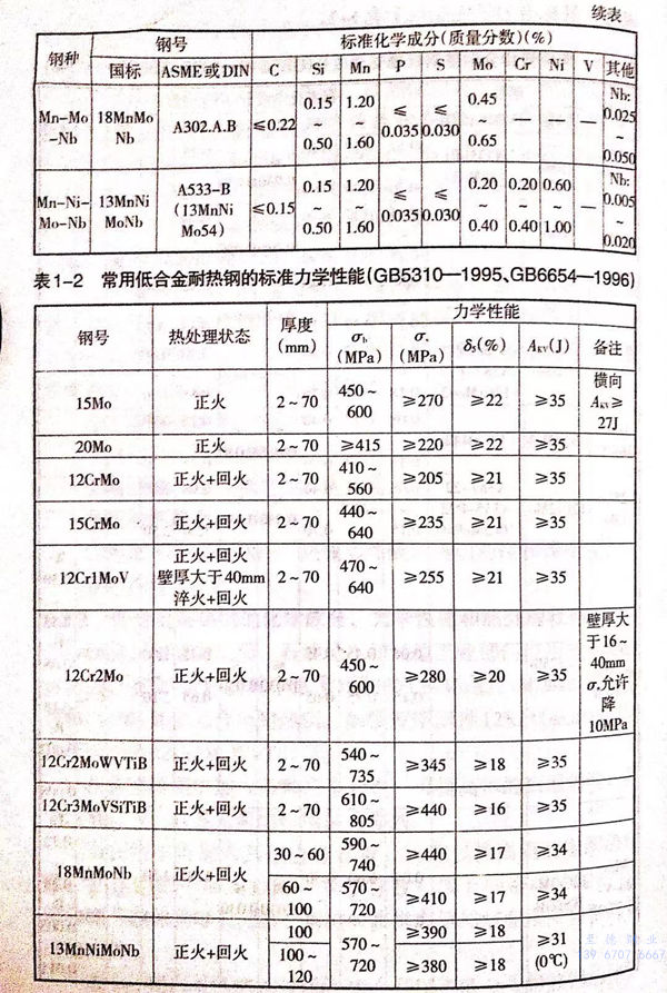 表1-1列出了已納入國標的10余種國產低合金耐熱鋼的化學成分,其標準力學性能列于表1-2。