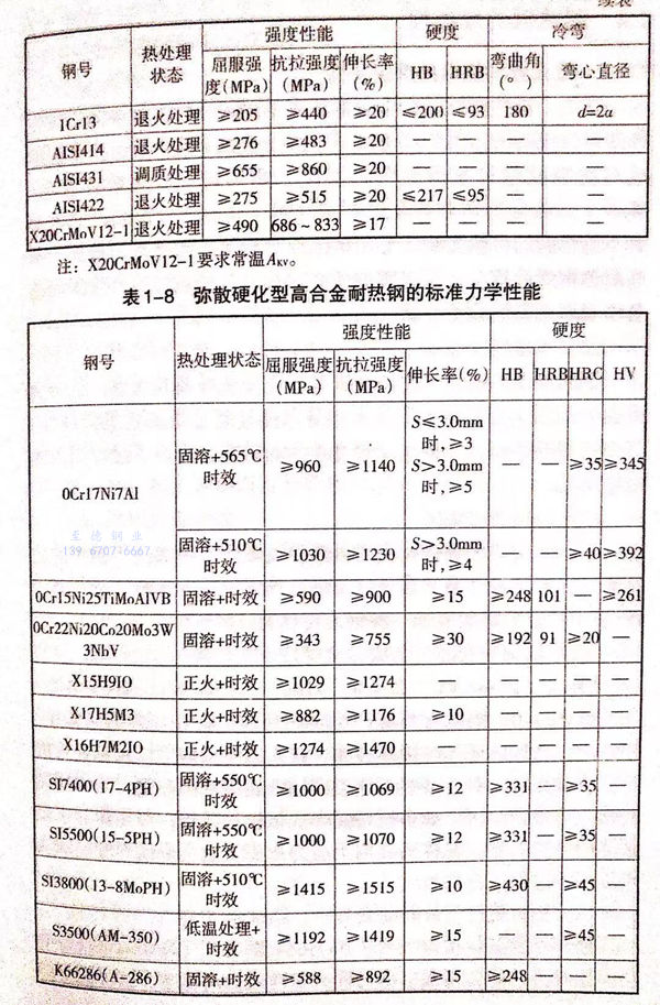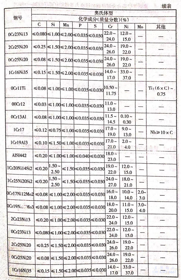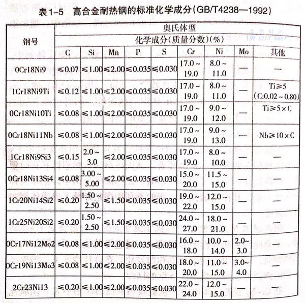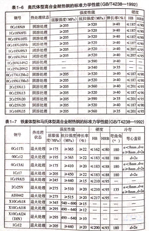我國(guo)和世界主要工(gong)業國(guo)家常用的奧氏(shi)體(ti)型、鐵素體(ti)型和馬氏(shi)體(ti)型高合金耐(nai)熱鋼的標準化學成分(fen)列(lie)于表(biao)1-5。這些(xie)鋼在(zai)供貨狀態(tai)下的力學性能(neng)分(fen)別列(lie)于表(biao)1-6、表(biao)1-7和表(biao)1-8。