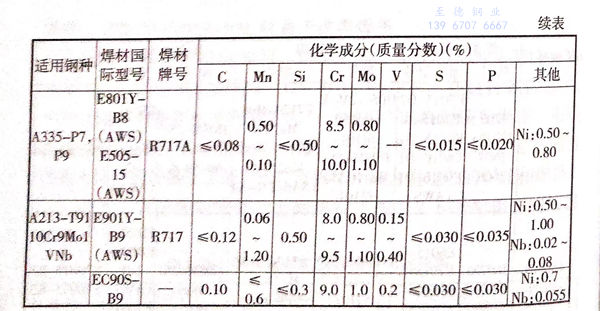 表2-7 中合金耐熱鋼常(chang)用(yong)焊接材料標(biao)準型號(hao)(hao)和(he)牌號(hao)(hao)及其化學成分(fen)