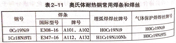 奧(ao)氏(shi)體(ti)耐熱(re)(re)鋼焊接(jie)(jie)填充(chong)材(cai)料(liao)的(de)(de)選擇首先要保證(zheng)焊縫的(de)(de)致(zhi)密性(xing),無裂紋和氣(qi)孔等(deng)缺陷。同時應(ying)使(shi)焊縫金屬的(de)(de)熱(re)(re)強性(xing)基本(ben)與(yu)母材(cai)等(deng)強。這就要求(qiu)其合金成(cheng)分(fen)(fen)大致(zhi)與(yu)母材(cai)成(cheng)分(fen)(fen)匹配。其次(ci)應(ying)考慮焊縫金屬內(nei)鐵素體(ti)含量(liang)的(de)(de)控制,對于長(chang)期在高溫下(xia)運行(xing)的(de)(de)奧(ao)氏(shi)體(ti)鋼焊件(jian),焊縫金屬內(nei)鐵素體(ti)的(de)(de)體(ti)積分(fen)(fen)數不應(ying)超過(guo)5%。為提高全(quan)奧(ao)氏(shi)體(ti)焊縫金屬的(de)(de)抗裂性(xing),選用錳達(da)6%~8%的(de)(de)焊接(jie)(jie)填充(chong)材(cai)料(liao)是一種行(xing)之有效的(de)(de)解(jie)決(jue)辦(ban)法。表2-11列出(chu)我國(guo)常用的(de)(de)奧(ao)氏(shi)體(ti)耐熱(re)(re)鋼焊條和焊絲的(de)(de)標準型(xing)號和牌號以及所適用的(de)(de)母材(cai)牌號。