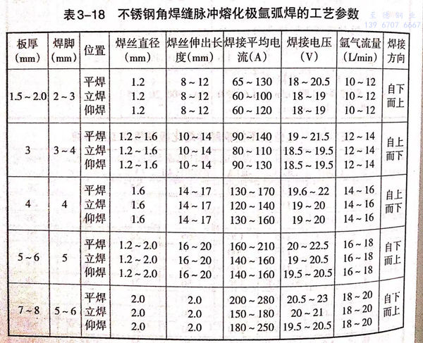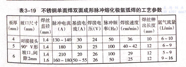 表3-16 平焊(han)(han)位置不銹(xiu)鋼(18-8)脈沖熔化極氬弧焊(han)(han)的工藝參數)