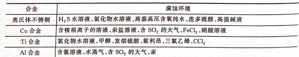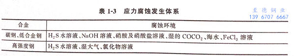 應(ying)(ying)力(li)(li)腐(fu)(fu)蝕(shi)斷裂是(shi)(shi)金(jin)(jin)屬(shu)在應(ying)(ying)力(li)(li)和(he)環(huan)(huan)境共同作用下發(fa)生(sheng)的(de)破壞(huai),并不(bu)(bu)是(shi)(shi)所有(you)的(de)金(jin)(jin)屬(shu)都會發(fa)生(sheng)應(ying)(ying)力(li)(li)腐(fu)(fu)蝕(shi),不(bu)(bu)同的(de)金(jin)(jin)屬(shu)發(fa)生(sheng)應(ying)(ying)力(li)(li)腐(fu)(fu)蝕(shi)的(de)環(huan)(huan)境是(shi)(shi)不(bu)(bu)一樣的(de),表1-3列(lie)出了目前發(fa)現的(de)應(ying)(ying)力(li)(li)腐(fu)(fu)蝕(shi)合金(jin)(jin)+環(huan)(huan)境體系(xi)。從(cong)表1-3可(ke)以看出,奧氏體不(bu)(bu)銹(xiu)鋼發(fa)生(sheng)應(ying)(ying)力(li)(li)腐(fu)(fu)蝕(shi)的(de)環(huan)(huan)境較廣,在高溫環(huan)(huan)境中的(de)水(shui)蒸氣(qi)、濕(shi)潤空氣(qi)等環(huan)(huan)境中都可(ke)能(neng)發(fa)生(sheng)。
