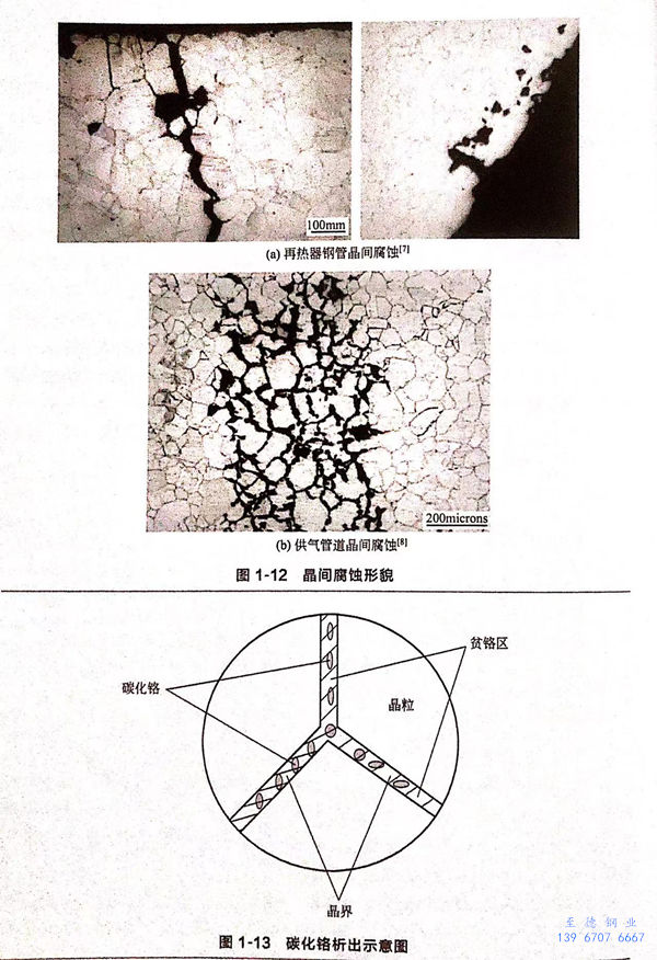 奧氏體不(bu)銹(xiu)鋼的(de)貧(pin)鉻主要(yao)是(shi)由于在(zai)(zai)熱(re)處(chu)理、焊接(jie)中(zhong),由于溫度處(chu)在(zai)(zai)450~850℃時,碳化鉻會在(zai)(zai)晶間(jian)(jian)析出,造成材料敏化。研究表明,不(bu)銹(xiu)鋼的(de)晶間(jian)(jian)腐蝕在(zai)(zai)弱(ruo)腐蝕性介(jie)(jie)質(如充氣海水(shui))、強腐蝕性介(jie)(jie)質(如濃硝酸)的(de)環(huan)境(jing)中(zhong)更加嚴重,但是(shi)基(ji)本不(bu)受介(jie)(jie)質溫度、受力方向的(de)影響。