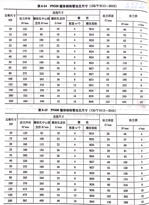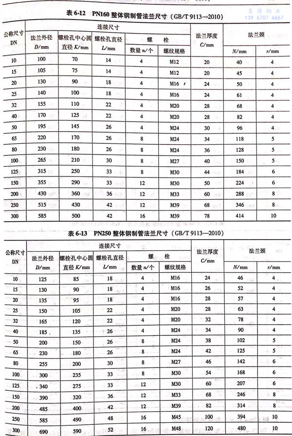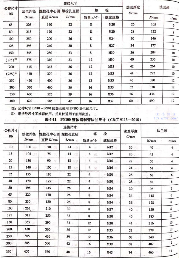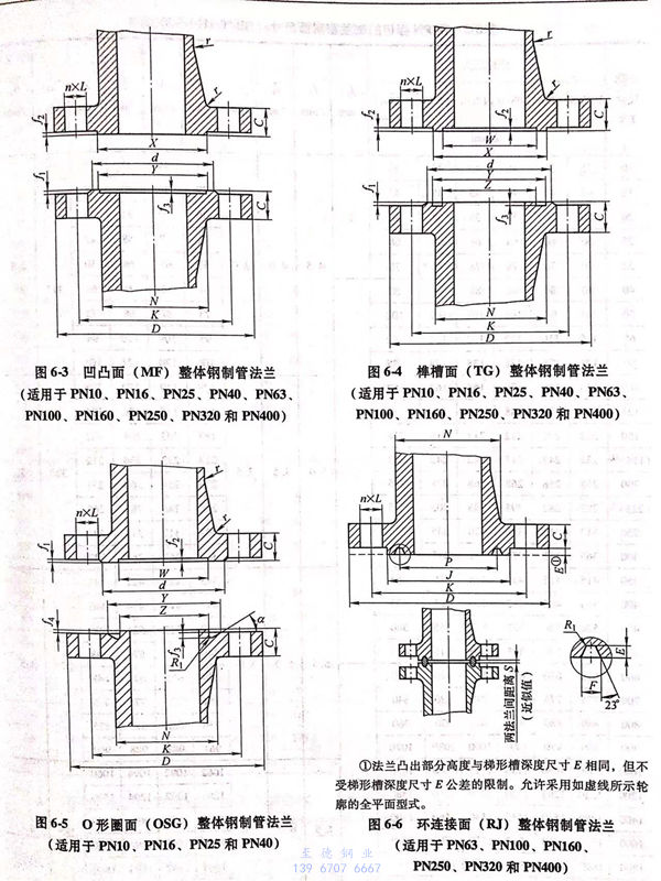 4. 用PN 標記的整體鋼制管法蘭(lan)的結構尺寸見圖 6-1 ~ 圖 6-6 及表 6-4 ~表 6-15。