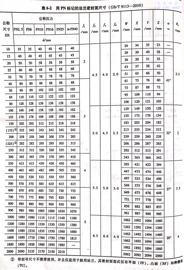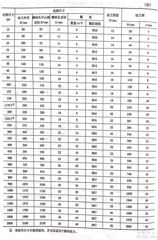 ③. 帶括號尺(chi)寸不推薦(jian)使用,并(bing)且僅適用于船用法蘭。