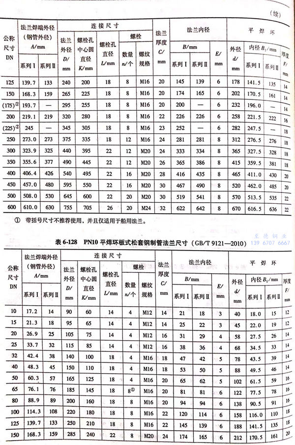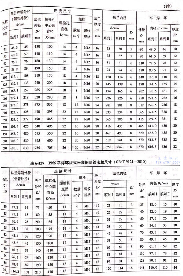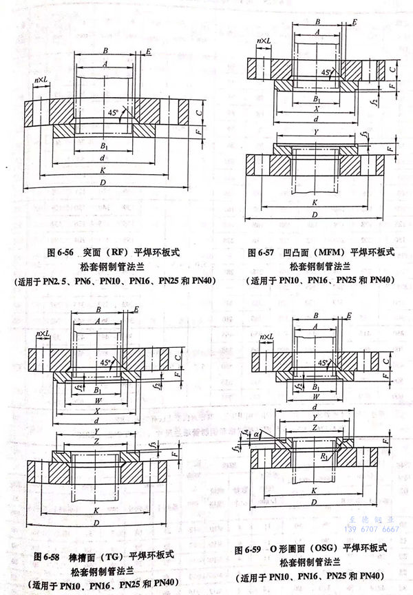 用(yong)PN標記(ji)的(de)(de)(de)平(ping)焊(han)環板(ban)式松套鋼制管法蘭的(de)(de)(de)密封面(mian)型式及適用(yong)的(de)(de)(de)公稱(cheng)壓(ya)力(li)和公稱(cheng)尺寸范圍(wei)見表(biao)6-124;用(yong)PN標記(ji)的(de)(de)(de)平(ping)焊(han)環板(ban)式松套鋼制管法蘭的(de)(de)(de)型式如圖6-56~圖6-59所(suo)示,法蘭密封面(mian)尺寸見表(biao)6-125,法蘭的(de)(de)(de)結構(gou)尺寸見表(biao)6-126~表(biao)6-131。