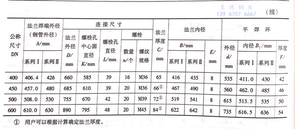 示例 2: 公稱尺寸DN400、公稱壓力PN40、凹凸面(MF)平焊環板式松套鋼制管法蘭(PL/C)、配用英制管(系列Ⅰ)、材料為06Cr19Ni10,其標記為:法蘭 DN400-PN40 PL/C MF Ⅰ 06Cr19Ni10 GB/T 9121