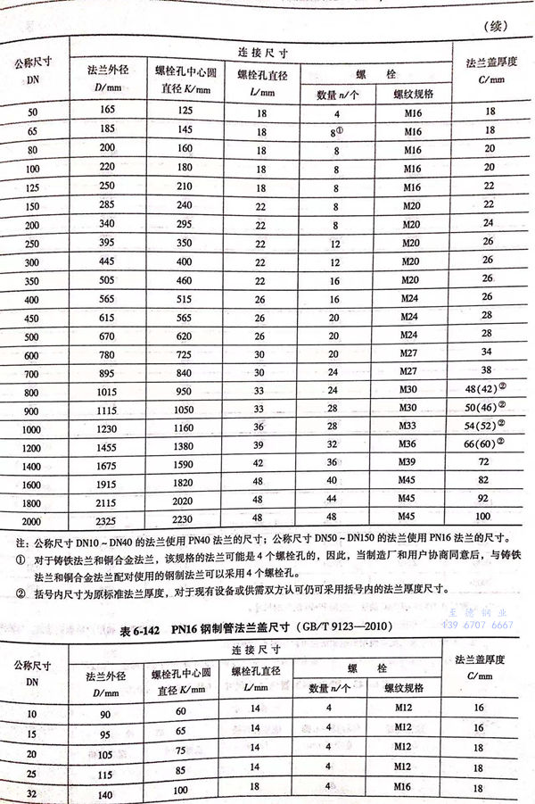 用PN標(biao)記(ji)的鋼制(zhi)管法蘭蓋的密(mi)封面型式及(ji)適(shi)用的公(gong)稱(cheng)壓力和公(gong)稱(cheng)尺寸(cun)范圍見表(biao)6-136;用PN標(biao)記(ji)的鋼制(zhi)管法蘭蓋的型式如圖6-62~圖6-67所示,密(mi)封面尺寸(cun)見表(biao)6-137~表(biao)6-138,法蘭結構尺寸(cun)見表(biao)6-139~表(biao)6-147。