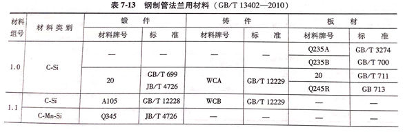 鋼制管法蘭用材料見表7-13. 不(bu)銹鋼法蘭(lan)材料的化學成分、力學性能、使用溫度和其他技術要求應符合表7-13中有關標準的規定。