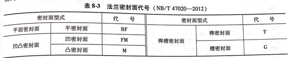 壓力容器法蘭密封面型式主要有平面密封面、凹凸面密封面及榫槽密封面三種型式,其密封面代號見表8-3。