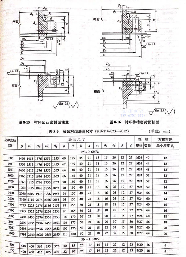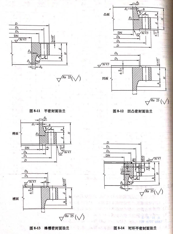 5. 襯環(huan)凹(ao)凸密(mi)封面法蘭型式如(ru)圖8-15所(suo)示,尺寸見(jian)表8-9。