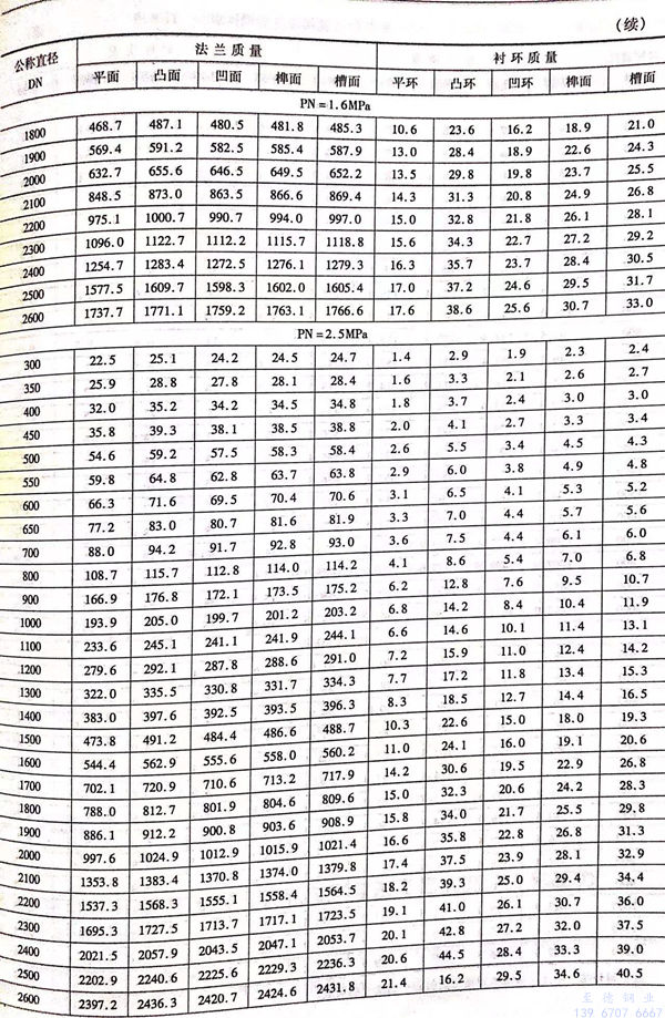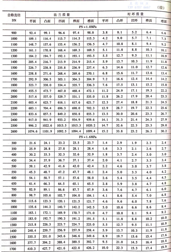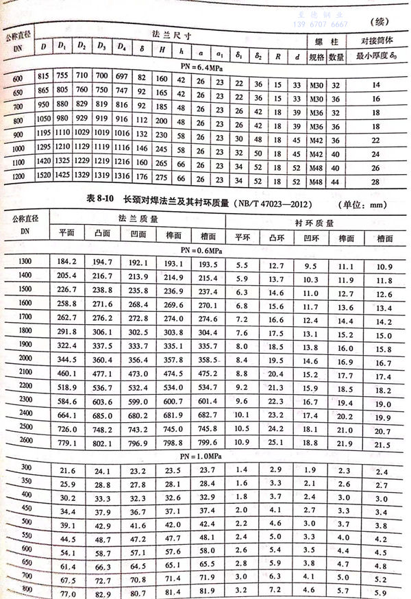 7. 長頸對焊法蘭及其襯環質量見表 8-10 。