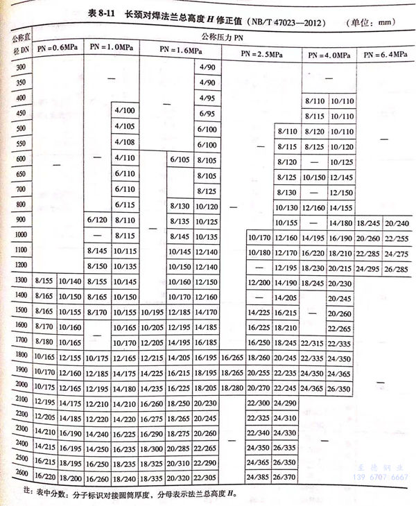 8. 長頸對焊法蘭總高度H修正(zheng)值見(jian)表 8-11 。