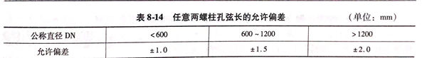 2. 法蘭(lan)螺(luo)柱(zhu)(zhu)(zhu)通孔(kong)中心圓直徑和相鄰兩螺(luo)柱(zhu)(zhu)(zhu)通孔(kong)弦長(chang)的允許(xu)偏差(cha)為±0.6mm, 任(ren)意兩螺(luo)柱(zhu)(zhu)(zhu)通孔(kong)弦長(chang)的允許(xu)偏差(cha)見表8-14。
