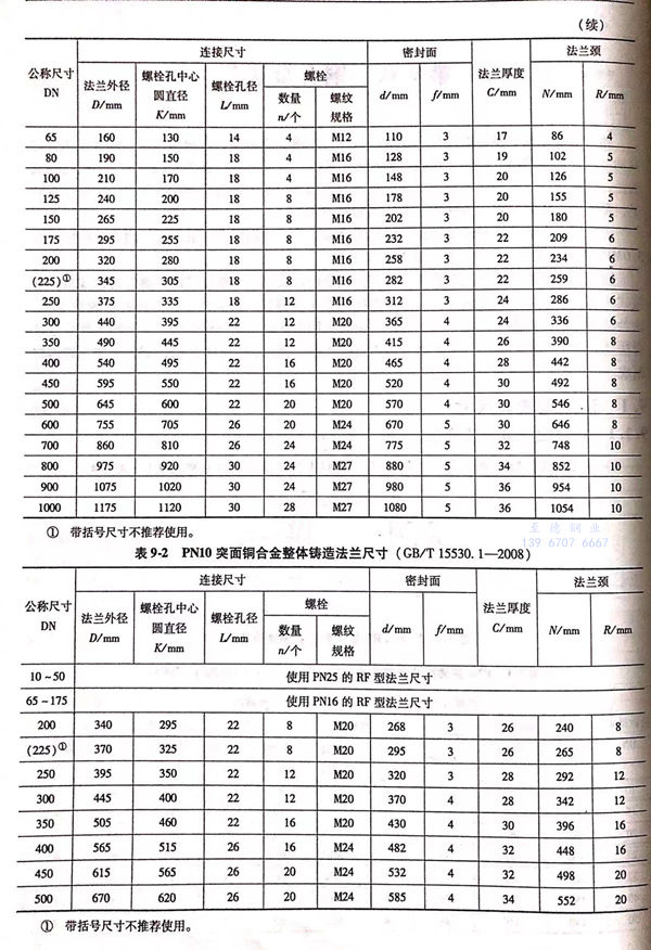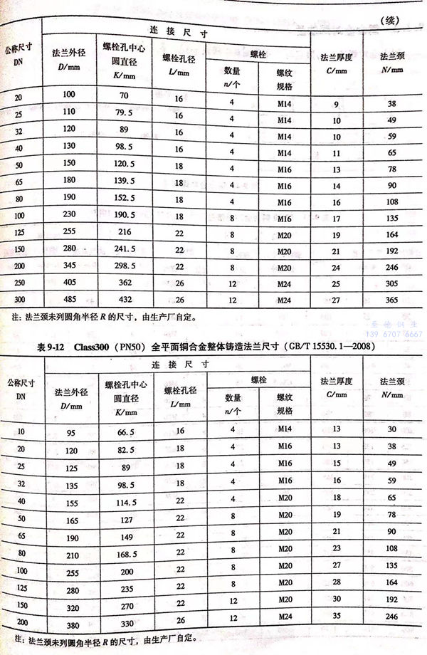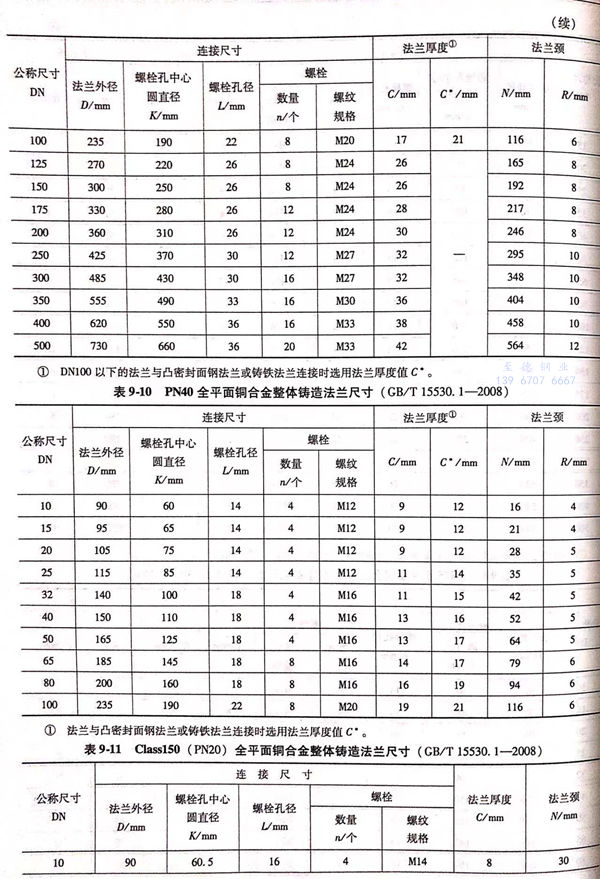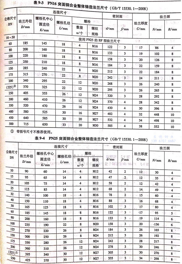 3. 全平面(FF型)銅合(he)金(jin)整(zheng)體鑄(zhu)造法蘭的型式與(yu)尺寸見(jian)圖9-3和表9-6~表9-12。