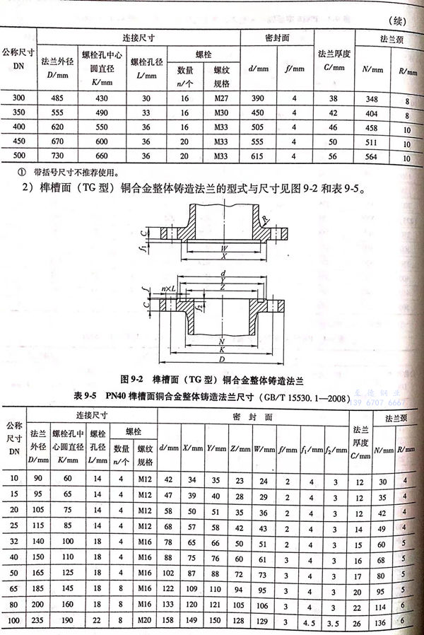 2. 榫(sun)槽面(TG型)銅合(he)金整體鑄造法蘭的型式與尺寸見圖9-2和(he)表9-5。