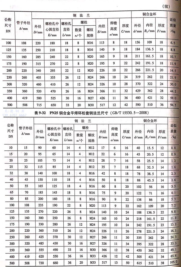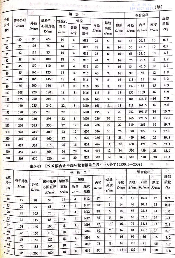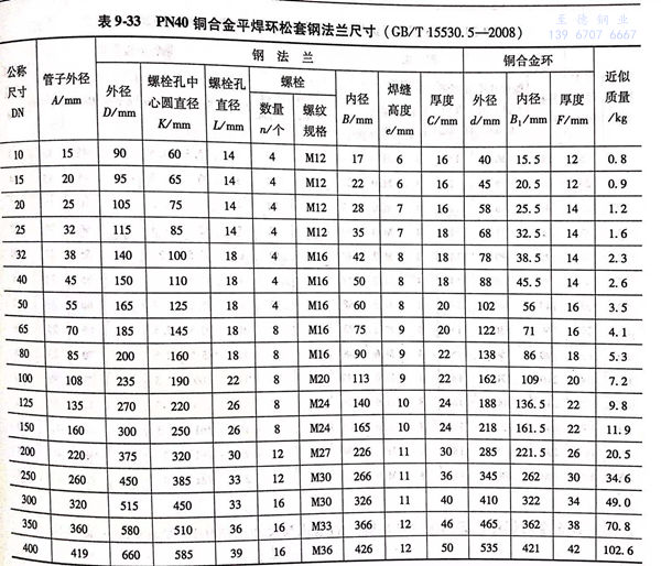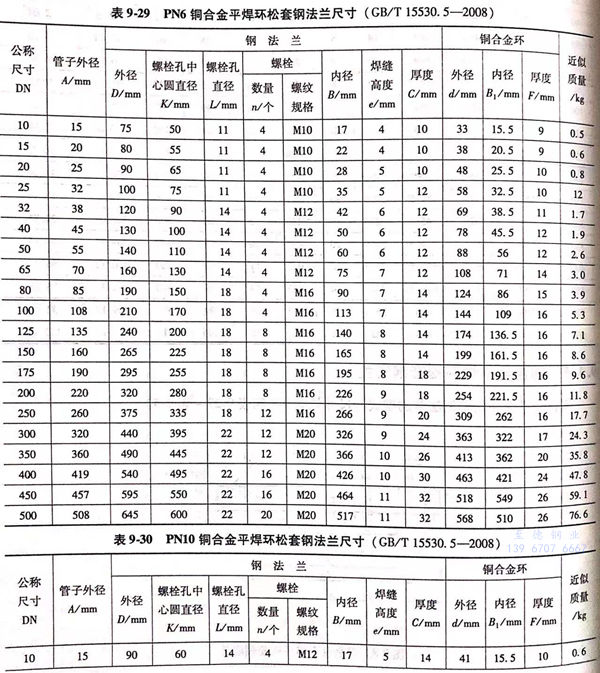 銅合金平焊環(huan)松套鋼法(fa)蘭的型式與尺(chi)寸見圖(tu) 9-8 和(he) 表(biao)(biao)(biao)表(biao)(biao)(biao) 9-29~表(biao)(biao)(biao) 9-33。