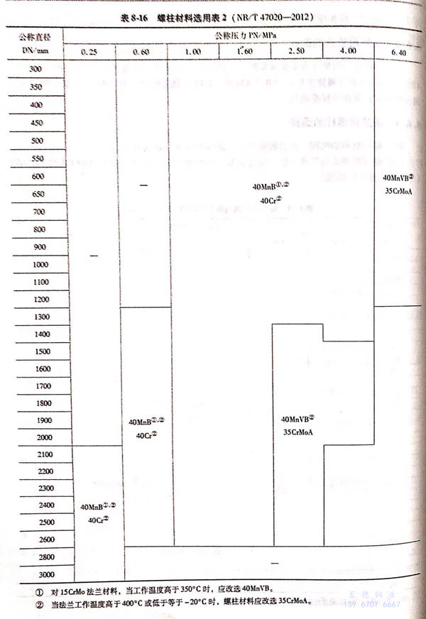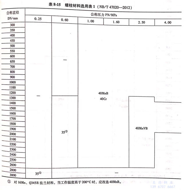 壓力容器法蘭用(yong)螺柱材(cai)料選(xuan)用(yong)表(biao)見(jian)表(biao)8-15~表(biao)8-17。