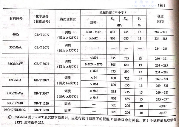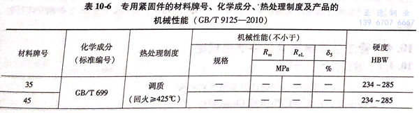 專用(yong)緊固(gu)件所用(yong)材料的(de)(de)化(hua)學成(cheng)分、熱(re)處理(li)制(zhi)度及機(ji)械性能(neng)見(jian)表10-6。超高溫高壓法蘭用(yong)緊固(gu)件的(de)(de)材料牌號及化(hua)學成(cheng)分、熱(re)處理(li)制(zhi)度和產品的(de)(de)機(ji)械性能(neng)由供需雙方協(xie)商(shang)確定。