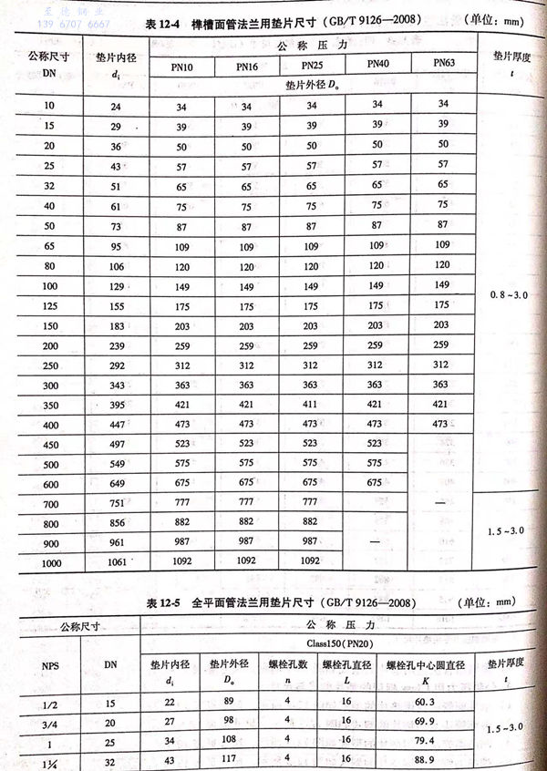 a. 全平面管法蘭用墊(dian)片的(de)型式如圖12-2所示(shi),尺寸見(jian)表12-5.