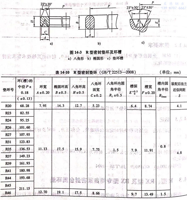 R型密封墊環(huan)及環(huan)槽如圖14-3所(suo)示,尺寸(cun)見表14-10.