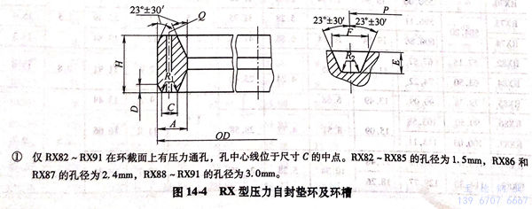 c. 壓(ya)力(li)通(tong)孔(kong):某些尺寸的(de)RX型(xing)墊環(huan)應具有一(yi)個如圖14-4所示(shi)的(de)貫通(tong)環(huan)截面(mian)的(de)壓(ya)力(li)通(tong)孔(kong);每(mei)個BX型(xing)墊環(huan)應具有一(yi)個如圖14-5所示(shi)的(de)貫通(tong)環(huan)截面(mian)的(de)壓(ya)力(li)通(tong)孔(kong)。