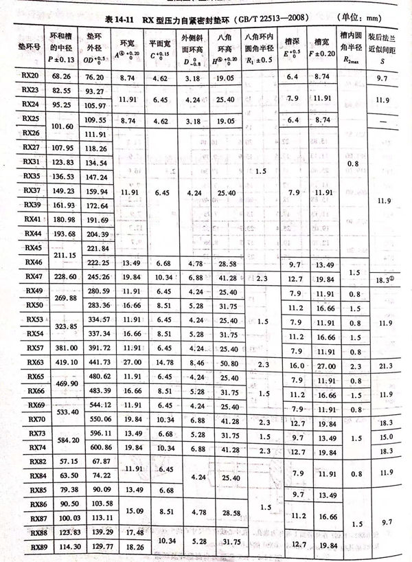 RX 型壓力自(zi)封墊環及環槽見圖 14-4 ,尺寸見表 14-11。