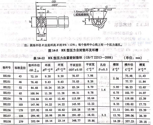 BX 型壓力自緊墊環及(ji)環槽如圖 14-5 所示,尺寸見(jian)表 14-12。