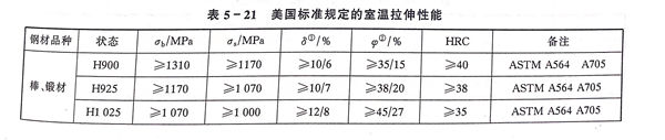 不(bu)同熱處理狀(zhuang)態的(de)(de)0Cr15Ni5Cu3Nb、15-5PH 不(bu)銹(xiu)鋼的(de)(de)高溫瞬時拉伸性(xing)能(neng)見表5-29。