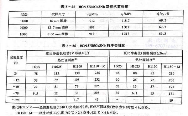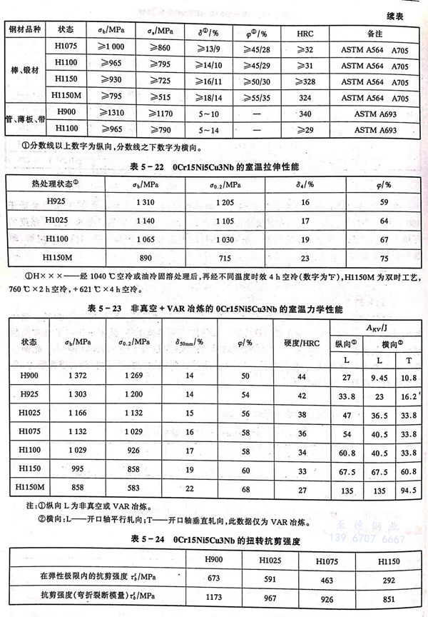 05Cr15Ni5Cu4Nb、0Cr15Ni5Cu3Nb、15-5PH 不銹鋼的化學成分見表5-20。