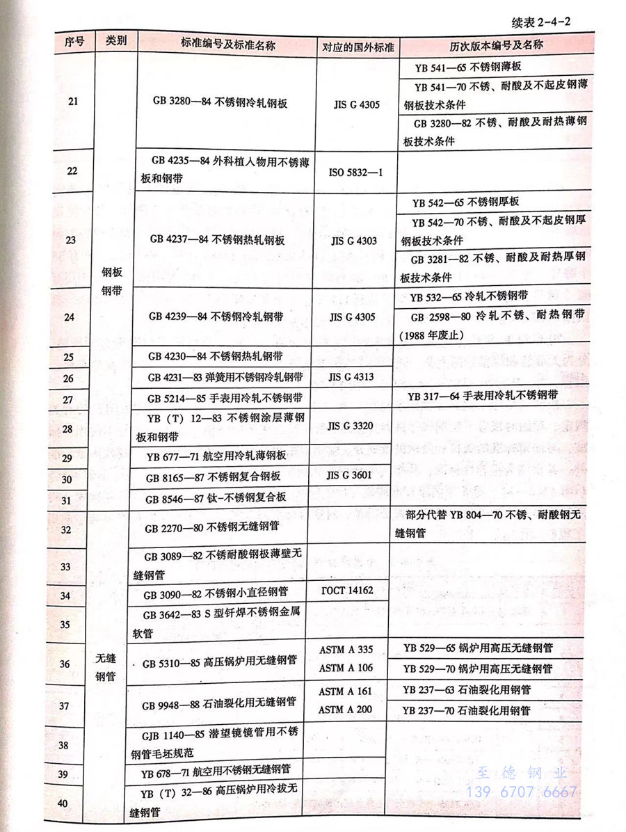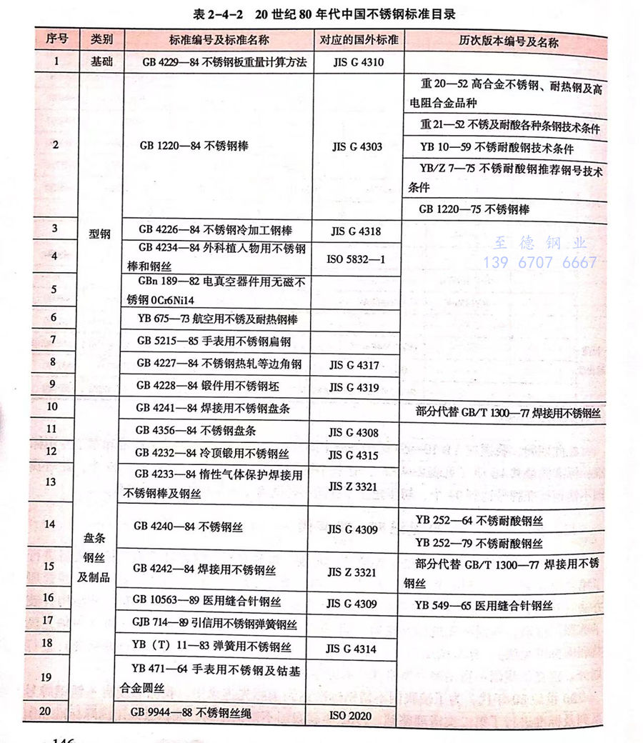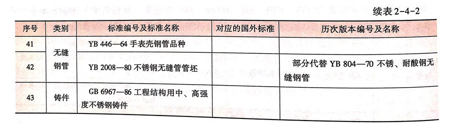 在此期間,我國在YB 10-59標(biao)準(zhun)基(ji)礎(chu)上陸續制(zhi)定了(le)一批不(bu)銹(xiu)(xiu)鋼(gang)品(pin)種標(biao)準(zhun)和(he)軍工專用(yong)標(biao)準(zhun),標(biao)準(zhun)數量共16項(見表(biao)2-4-2),這些不(bu)銹(xiu)(xiu)鋼(gang)品(pin)種標(biao)準(zhun)中有不(bu)銹(xiu)(xiu)鋼(gang)牌(pai)號(hao)(hao)49個,此時我國不(bu)銹(xiu)(xiu)鋼(gang)標(biao)準(zhun)牌(pai)號(hao)(hao)達到94個,初步建立了(le)我國不(bu)銹(xiu)(xiu)鋼(gang)牌(pai)號(hao)(hao)體系(xi)和(he)產品(pin)標(biao)準(zhun)體系(xi)。