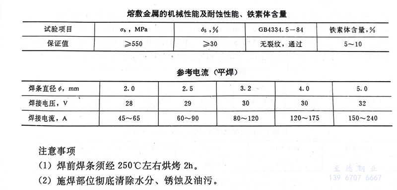 GYA316Nb(符合(he)GB;E0-18-12Mo2Nb-16)是鈦鈣型藥皮低碳不(bu)銹鋼焊(han)條。焊(han)縫(feng)具有一(yi)定量鐵素體,可保證焊(han)縫(feng)的抗裂性能(neng),具有良(liang)好的耐(nai)晶間(jian)腐蝕(shi)。采用直流電源,反極性,短弧焊(han)接(jie)。飛濺小,易脫(tuo)渣,成型好,有良(liang)好的操作工藝性能(neng)。用于焊(han)接(jie)一(yi)般(ban)耐(nai)熱又要(yao)求耐(nai)蝕(shi)性的0Cr17Ni12Mo2Ti、00Cr17Ni14Mo2不(bu)銹鋼結構的多層焊(han)接(jie)。如尿(niao)素塔、維尼綸等接(jie)觸腐蝕(shi)介質(zhi)的部件。