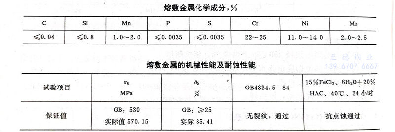 GYA25.22.2(相當:NC-310MF)是鈦鈣型(xing)藥(yao)皮超低碳(tan)耐尿素腐(fu)蝕的(de)不(bu)銹鋼焊(han)條,具(ju)有優(you)良的(de)耐休氏腐(fu)蝕性能(neng)和耐尿素腐(fu)蝕的(de)良好性能(neng)。采用直流電源、反極性,短(duan)弧(hu)焊(han)接。飛(fei)濺(jian)小(xiao),易脫渣(zha)、成型(xing)好,有優(you)良的(de)操作工藝性能(neng)。用于焊(han)接310Mo(00Cr25Ni22Mo2N)尿素鋼及尿素塔(ta)體襯里的(de)手工堆焊(han)及襯里修補。
