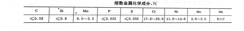 GYA347L(符合GB:E00-19-10Nb-16,相當AWS:E347-16、JIS:D347--16)是鈦鈣(gai)型藥皮超(chao)低(di)碳(tan)含(han)鈮(ni)的(de)(de)(de)不銹鋼焊條,具有優(you)良的(de)(de)(de)耐晶間腐蝕性(xing)能。采(cai)用直流電源,反極性(xing),短弧焊接(jie)。飛濺小(xiao),易脫渣,成型好(hao),有良好(hao)的(de)(de)(de)操作工藝性(xing)能。用于(yu)反應堆壓力容器(qi)和石油(you)熱壁加氫反應器(qi)內壁的(de)(de)(de)面層(ceng)(不銹鋼)堆焊、低(di)合金鋼-0Cr18Ni9Ti、復合鋼焊接(jie)及0Cr18Ni9Ti、1Cr18Ni9Ti、1Cr18Ni9Nb等含(han)合金穩定元素的(de)(de)(de)不銹鋼結構的(de)(de)(de)焊接(jie)。