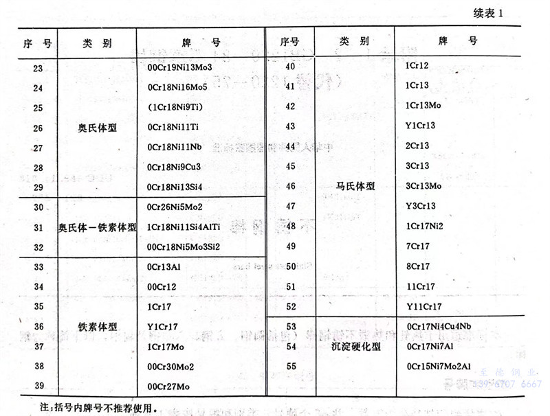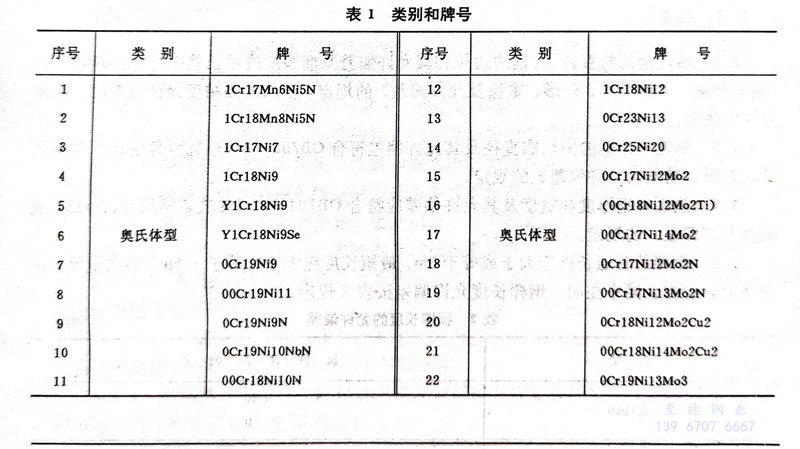 1.1 鋼按組織特(te)征(zheng)分為五(wu)類,共55個牌(pai)號(hao)。類別和牌(pai)號(hao)按表1所列(表1見原文(wen))。