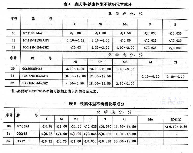 表4 奧氏體(ti)-鐵素(su)體(ti)型不銹鋼化學(xue)成分