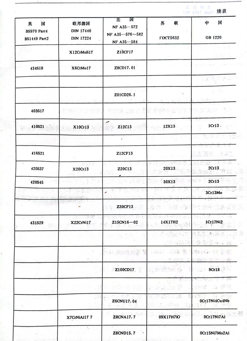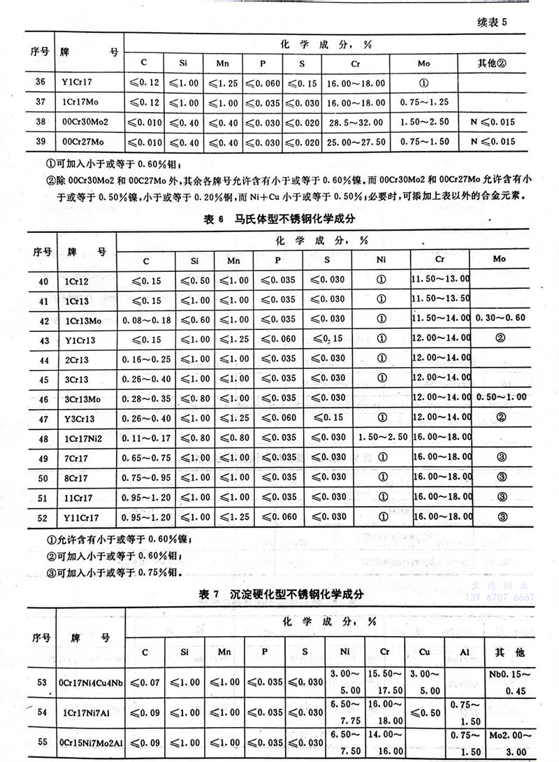 序(xu)號47Y3Cr13原S≤0.15%,更正為S≥0.15%。