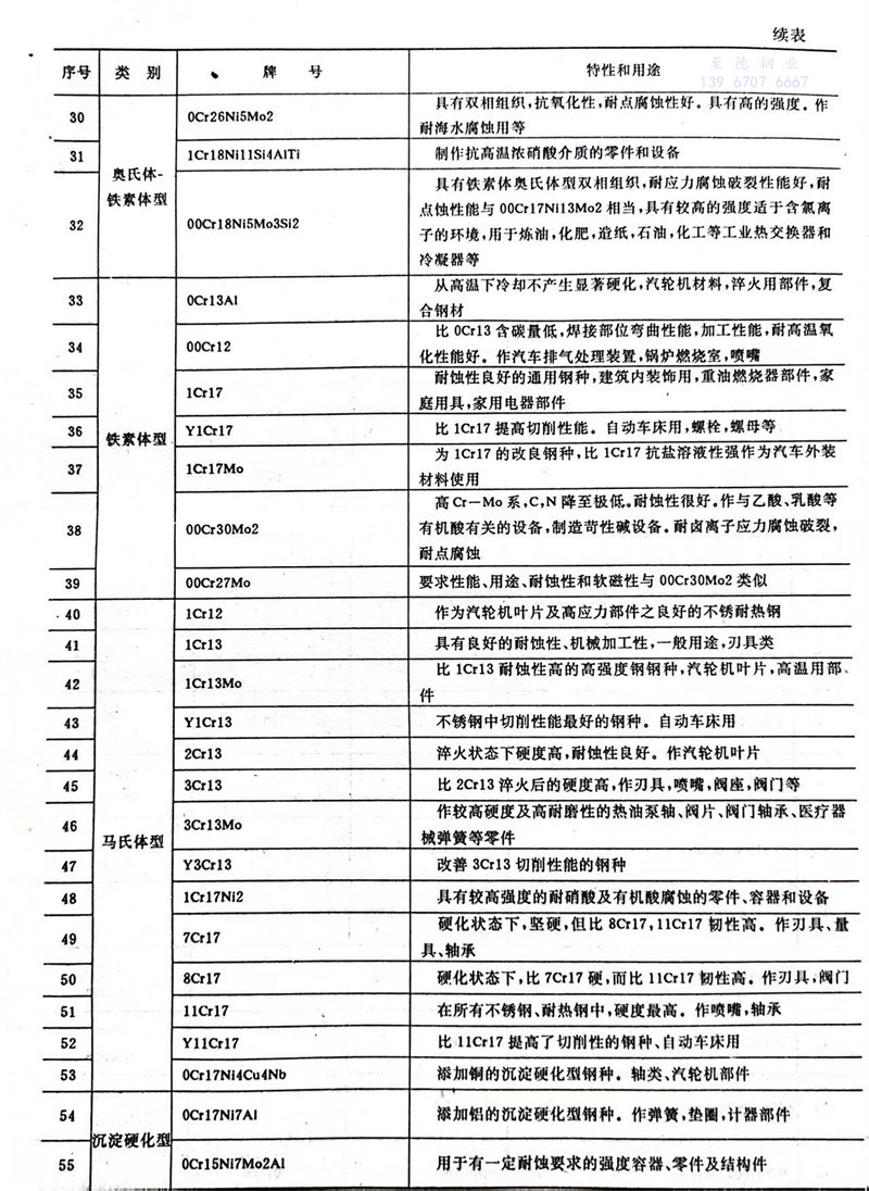 A.1 不銹(xiu)鋼的(de)特性和用途(tu)見下表