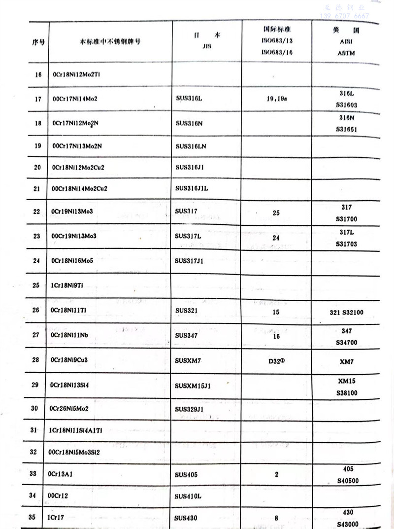 序(xu)號5Y1Cr18Ni9原(yuan)S≤0.15%,更(geng)正為S0.15%。