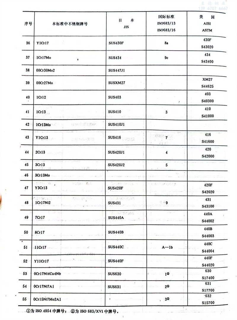 序號(hao)43Y1Cr13原S≤0.15%,更正為S≥0.15%。