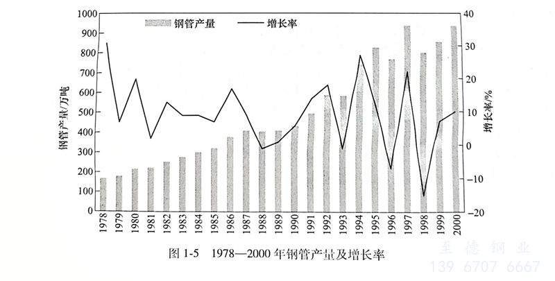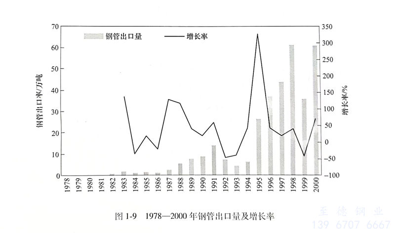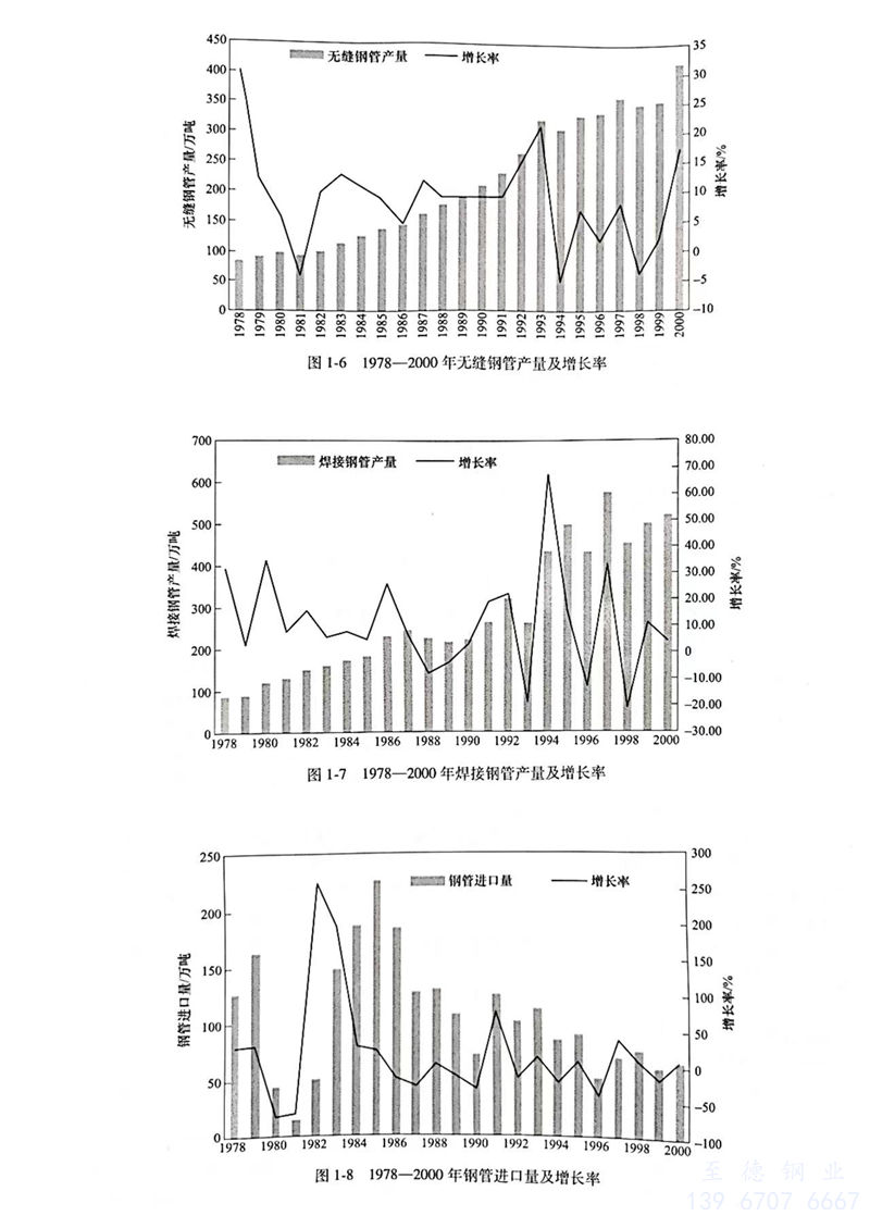 1978-2000年不銹鋼(gang)管(guan)產量、不銹鋼(gang)無縫管(guan)產量、不銹鋼(gang)焊接鋼(gang)管(guan)產量增(zeng)長(chang)趨勢(shi)圖(tu)見(jian)圖(tu)1-5~圖(tu)1-7,鋼(gang)管(guan)進(jin)口(kou)量、出口(kou)量增(zeng)長(chang)趨勢(shi)圖(tu)見(jian)圖(tu)1-8、圖(tu)1-9所示。