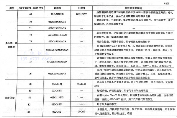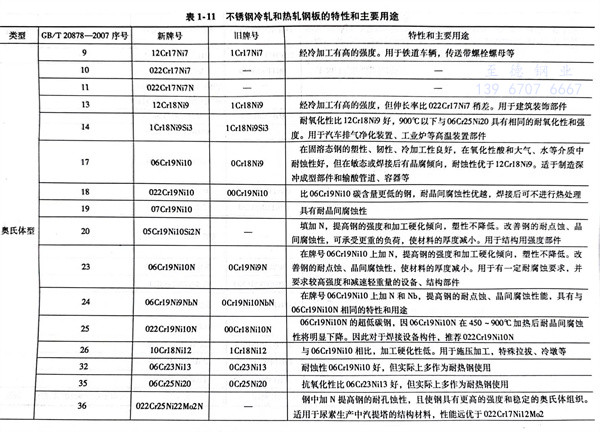 不銹鋼冷軋和熱軋(ya)鋼板的特性和主要用途(見表1-11)